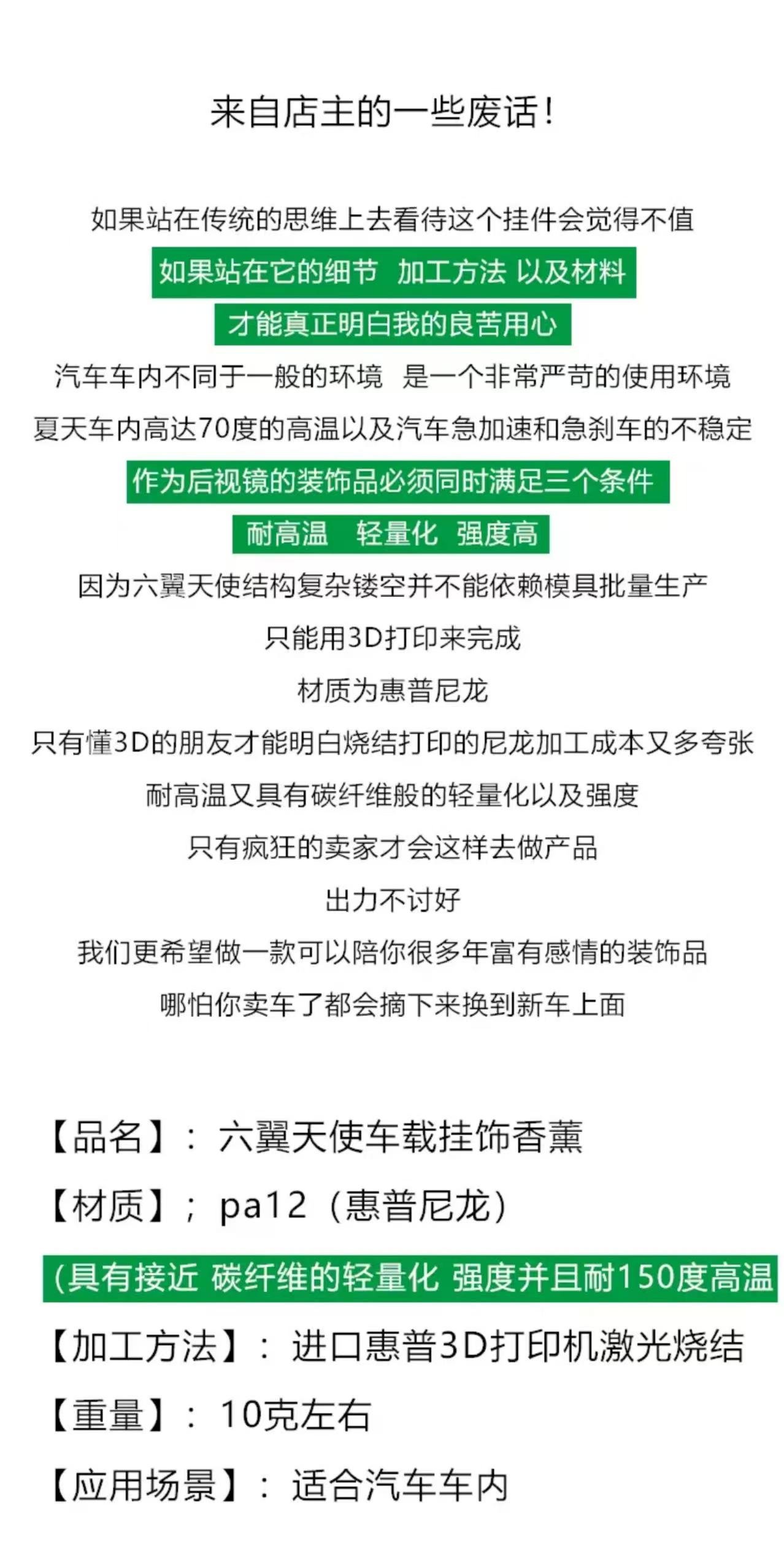 ollig·六翼天使車載香薰香氛個性創意禮物品 高級汽車內飾香水吊墜