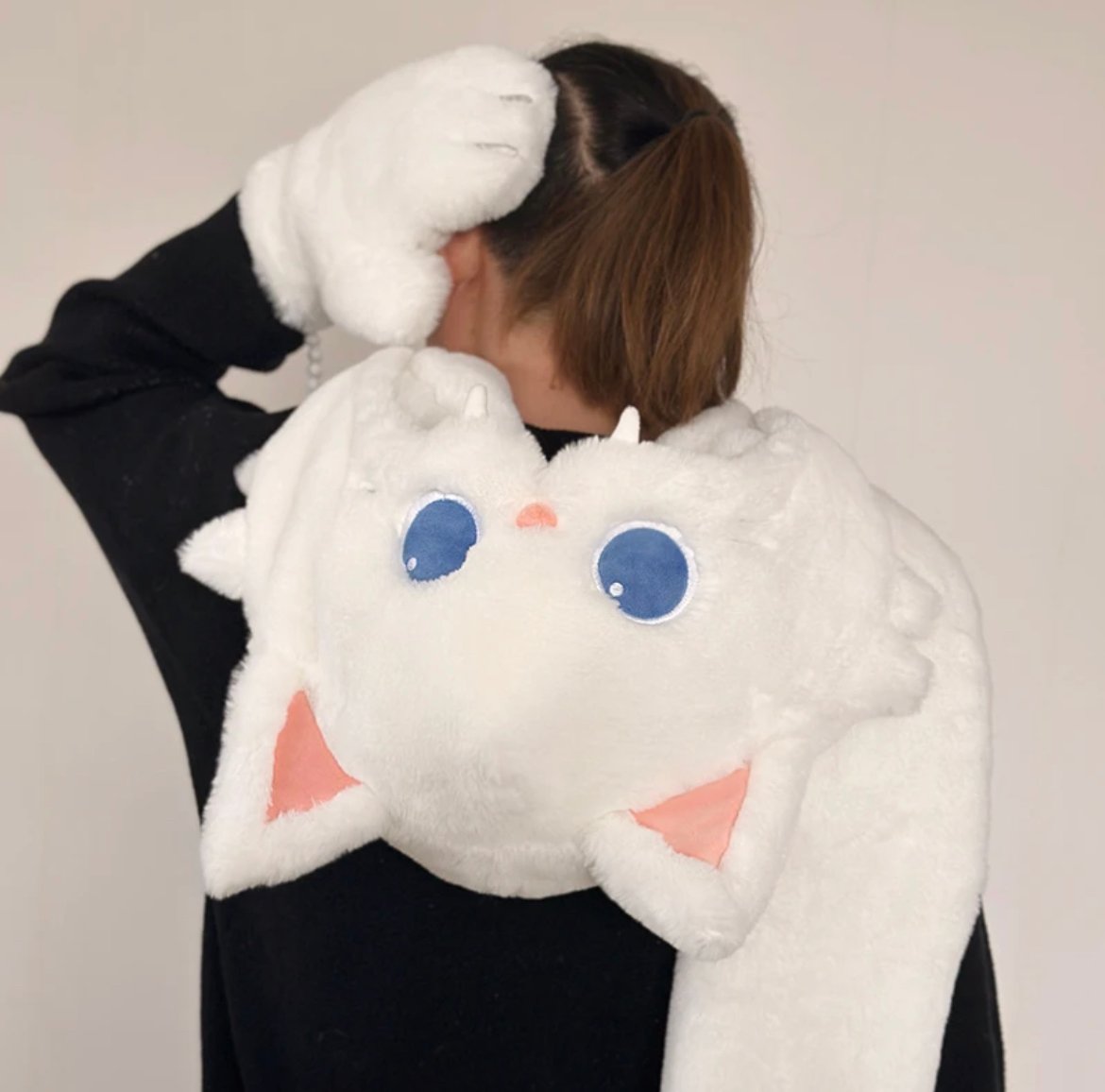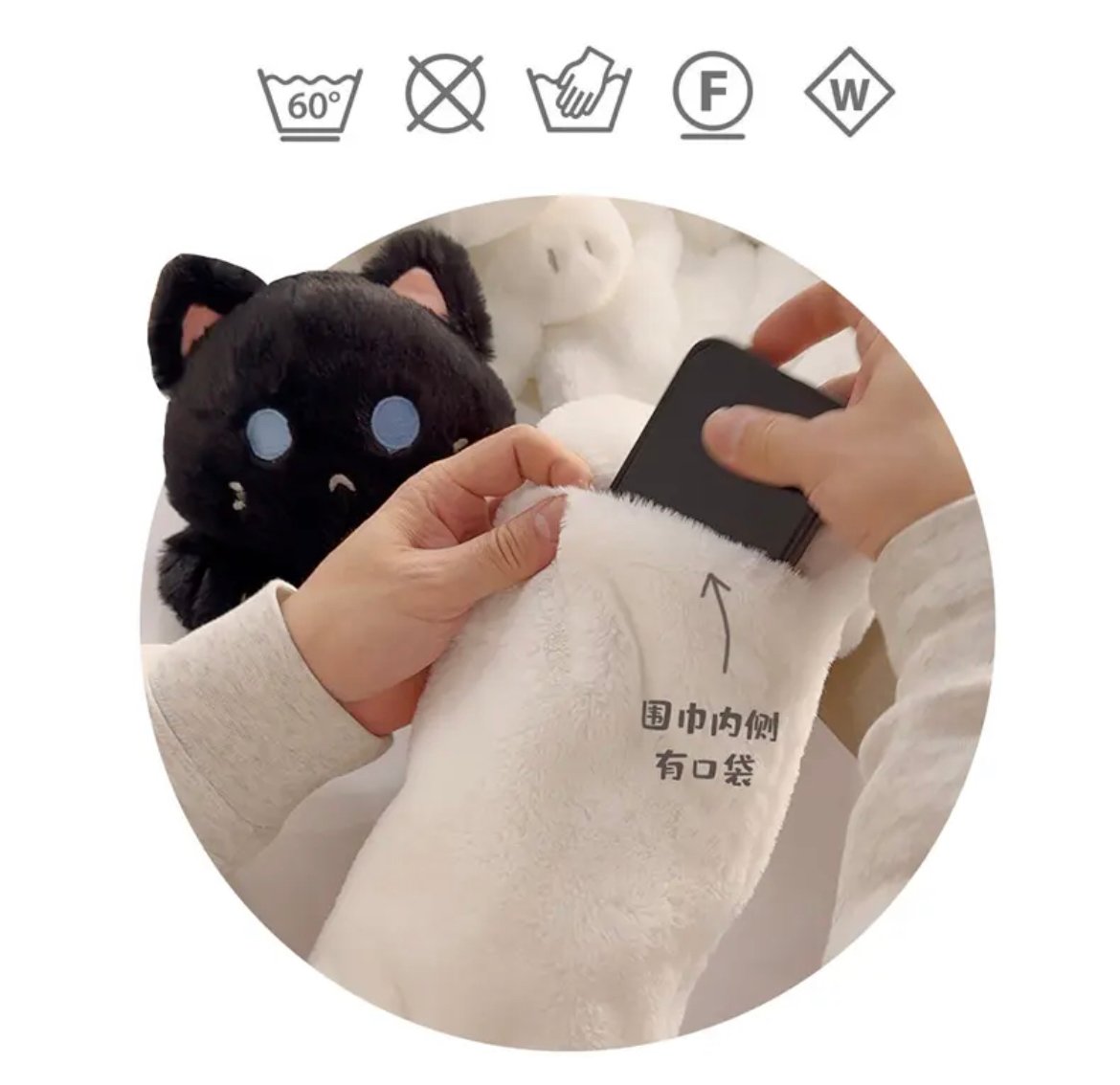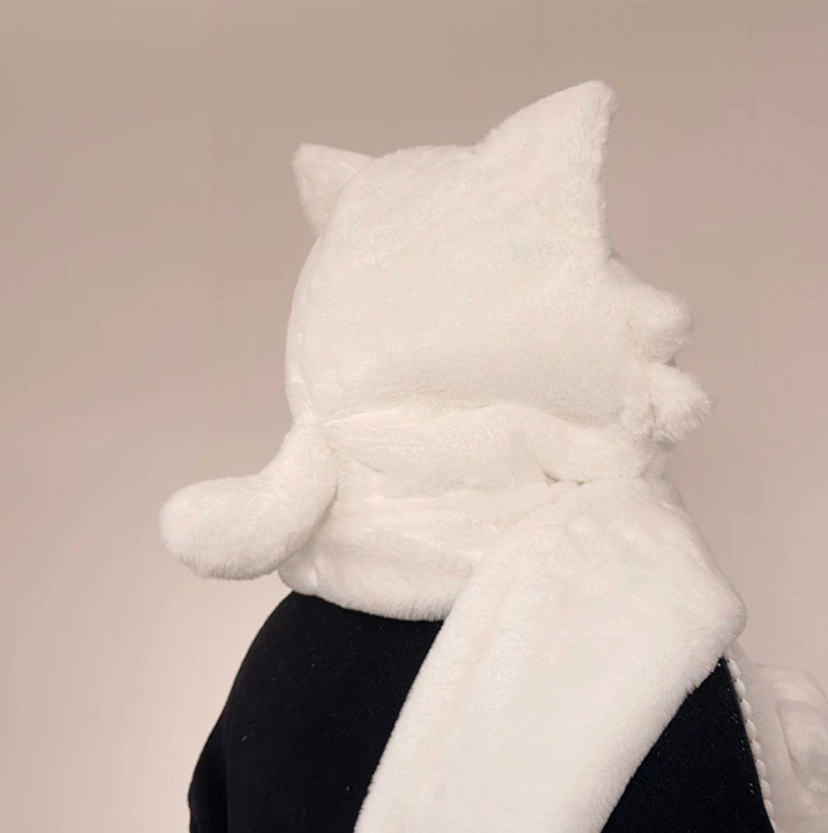 ollig·可愛貓咪圍脖帽子手套一體毛絨保暖百搭連帽圍巾冬季女生禮物
