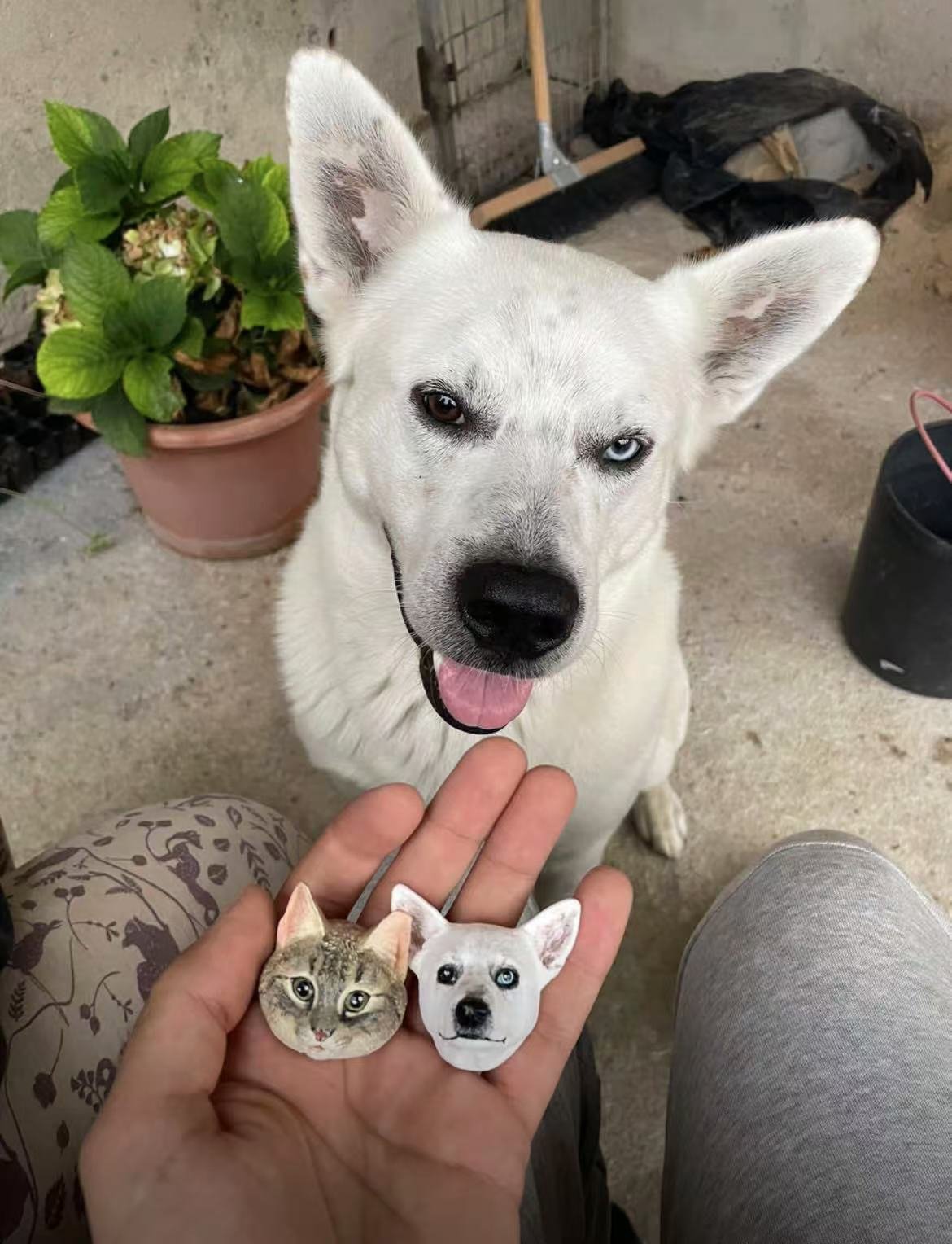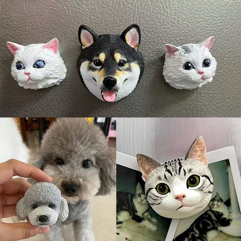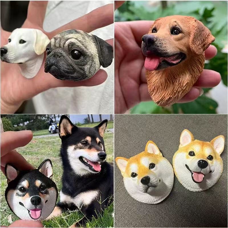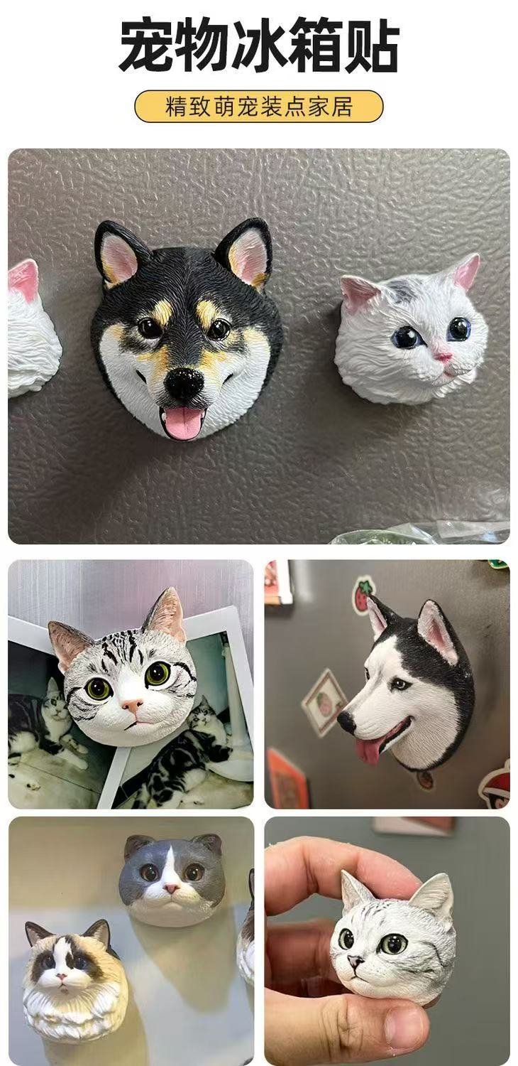 ollig·手繪寵物石膏頭像狗狗貓咪冰箱貼全身3d立體彩繪高顏值車載擴香石