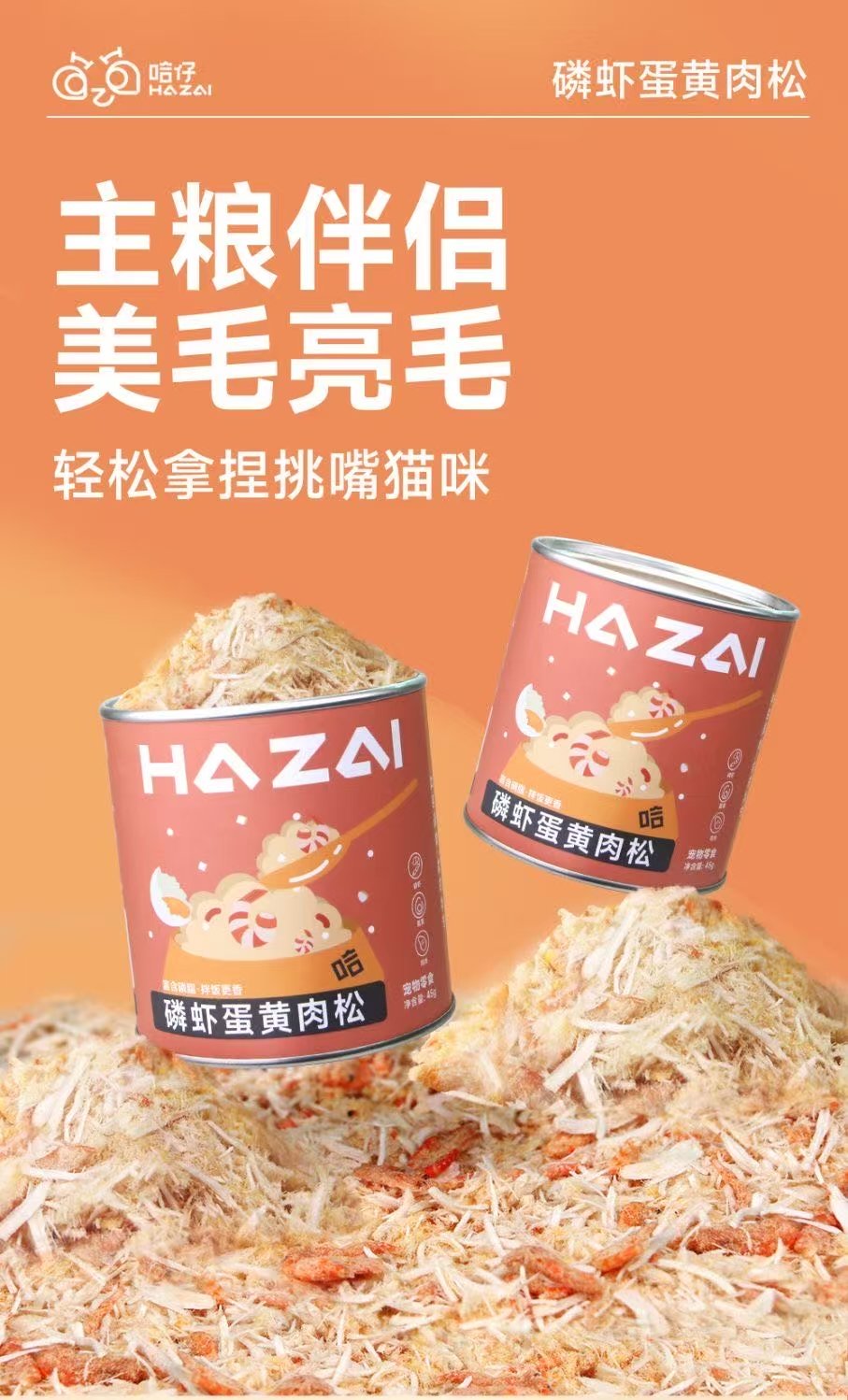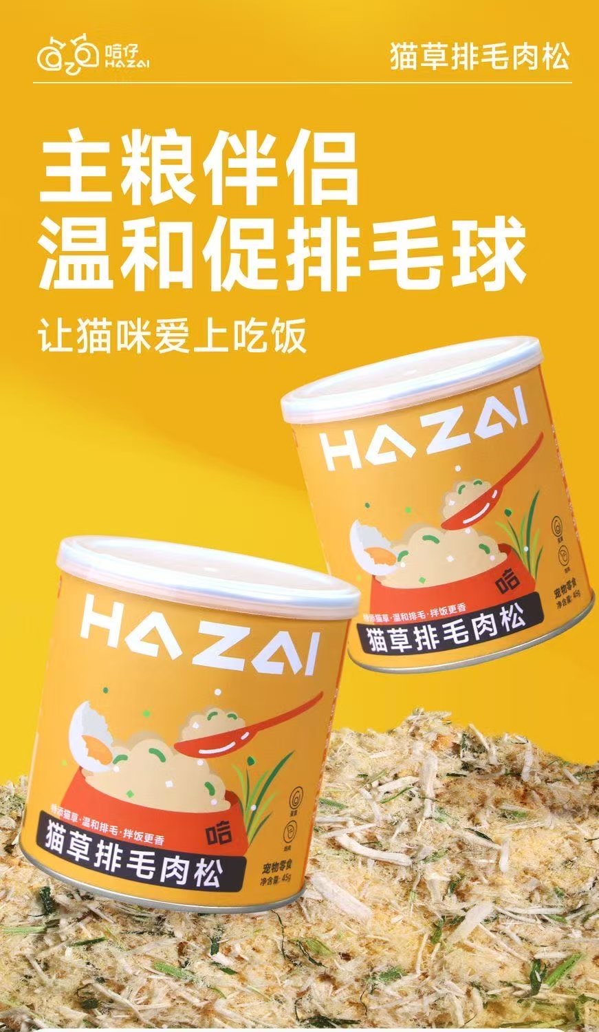 ollig·HAZAI蛋黃雞肉貓草溫和排毛肉鬆貓咪挑食拌飯貓糧伴侶凍乾貓咪零食