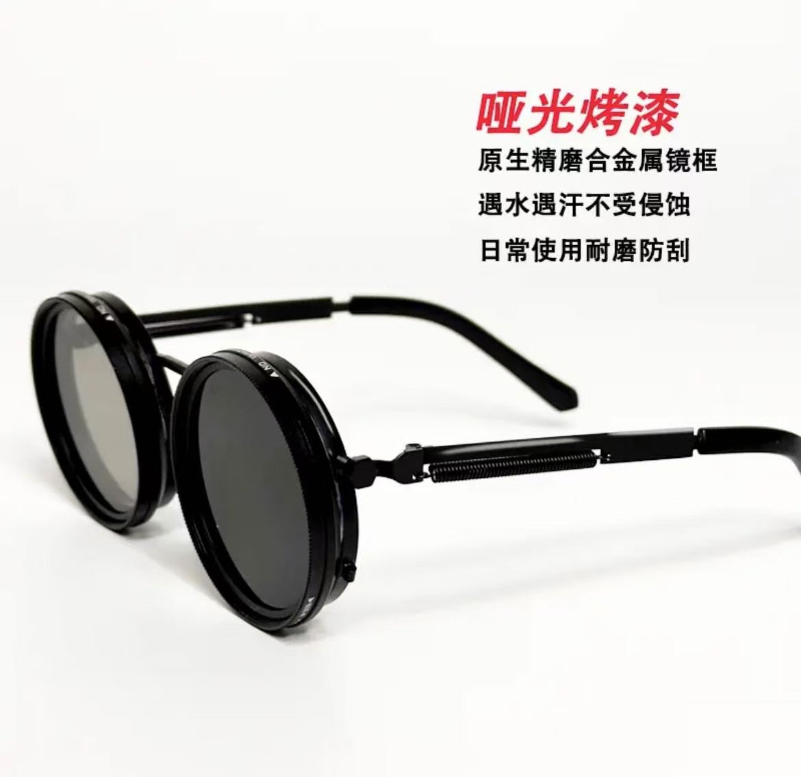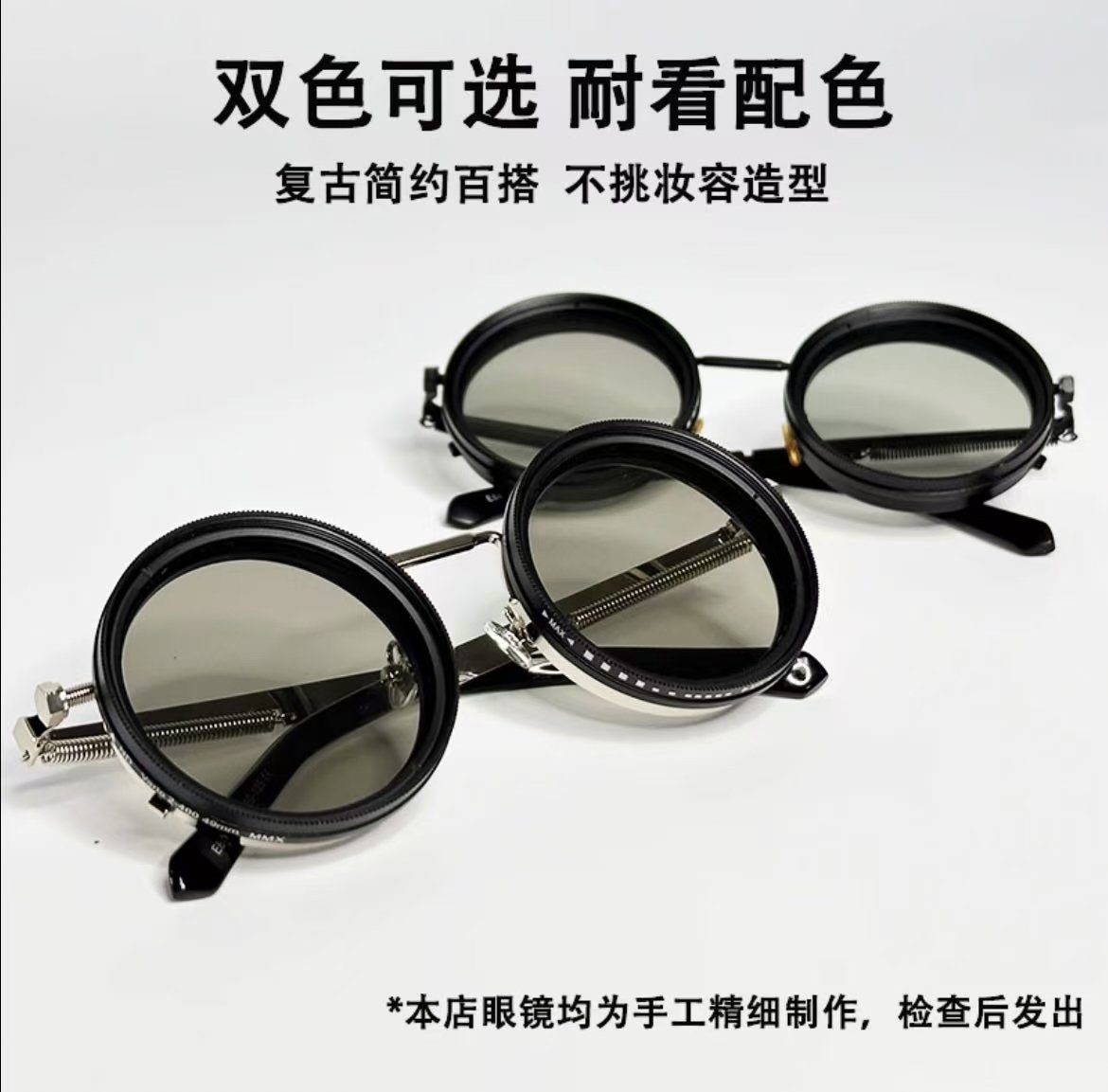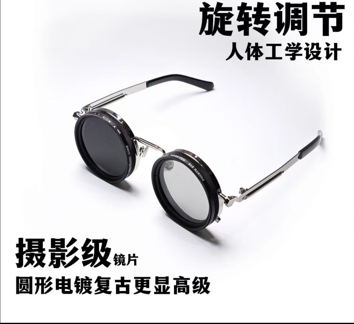 ollig·ND純手工太陽墨鏡偏光偏振減光濾鏡可調節復古圓形框nd偏光眼鏡