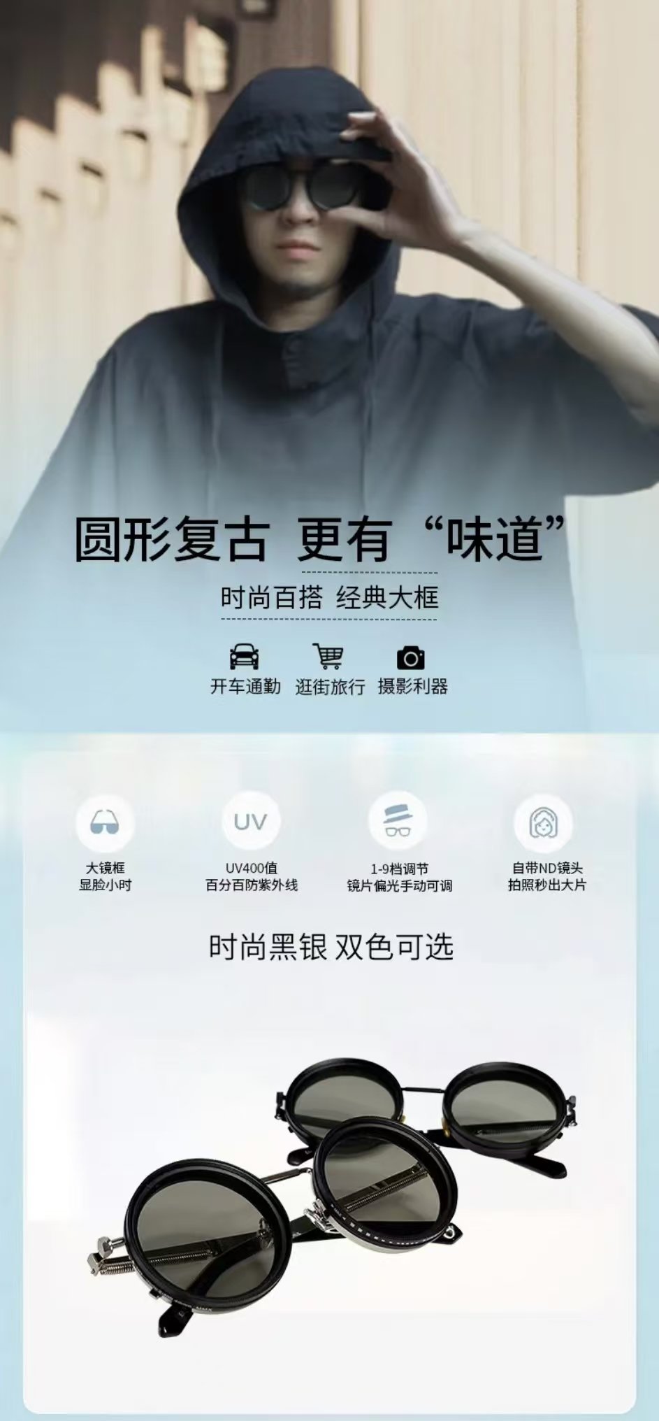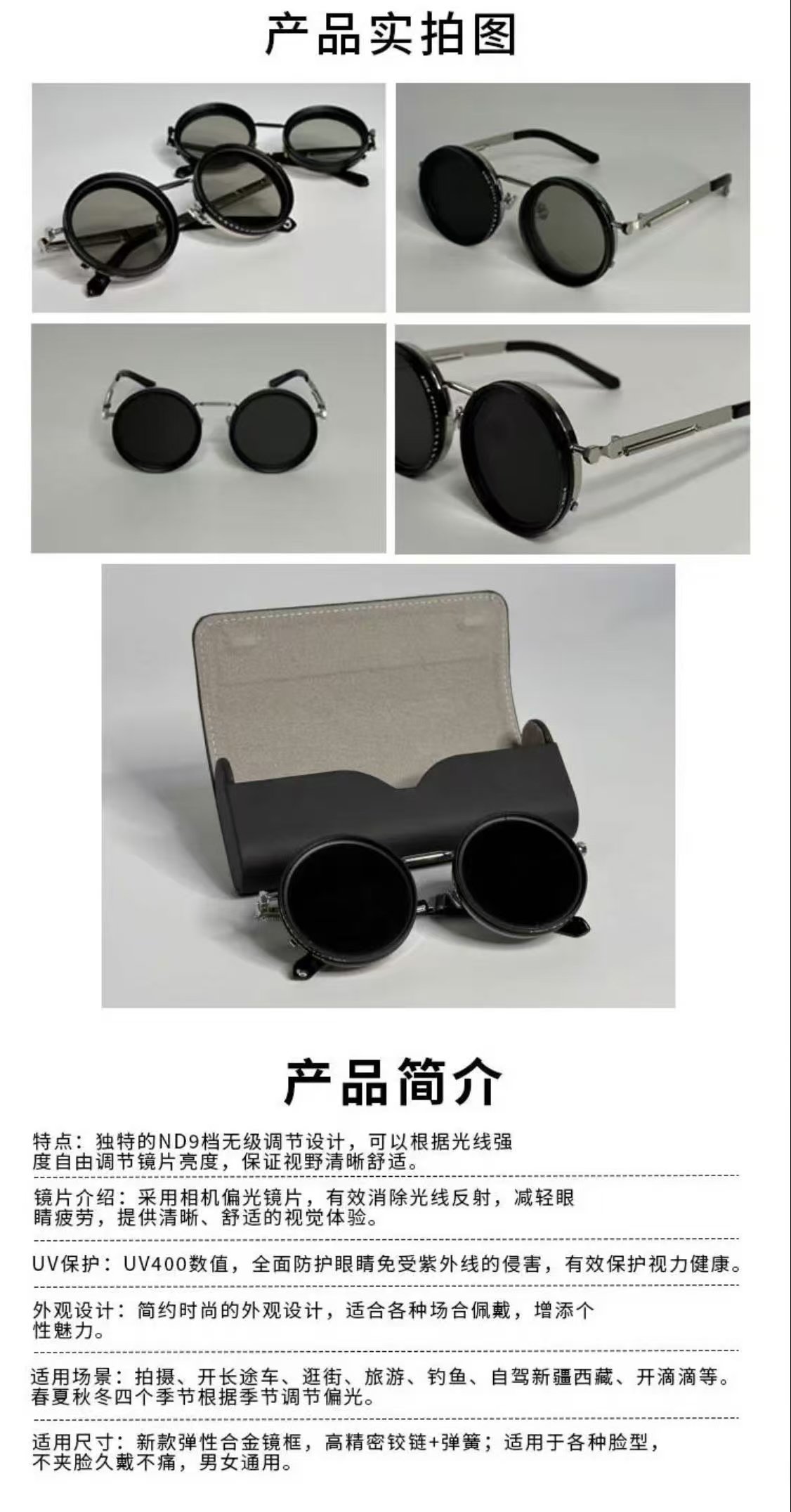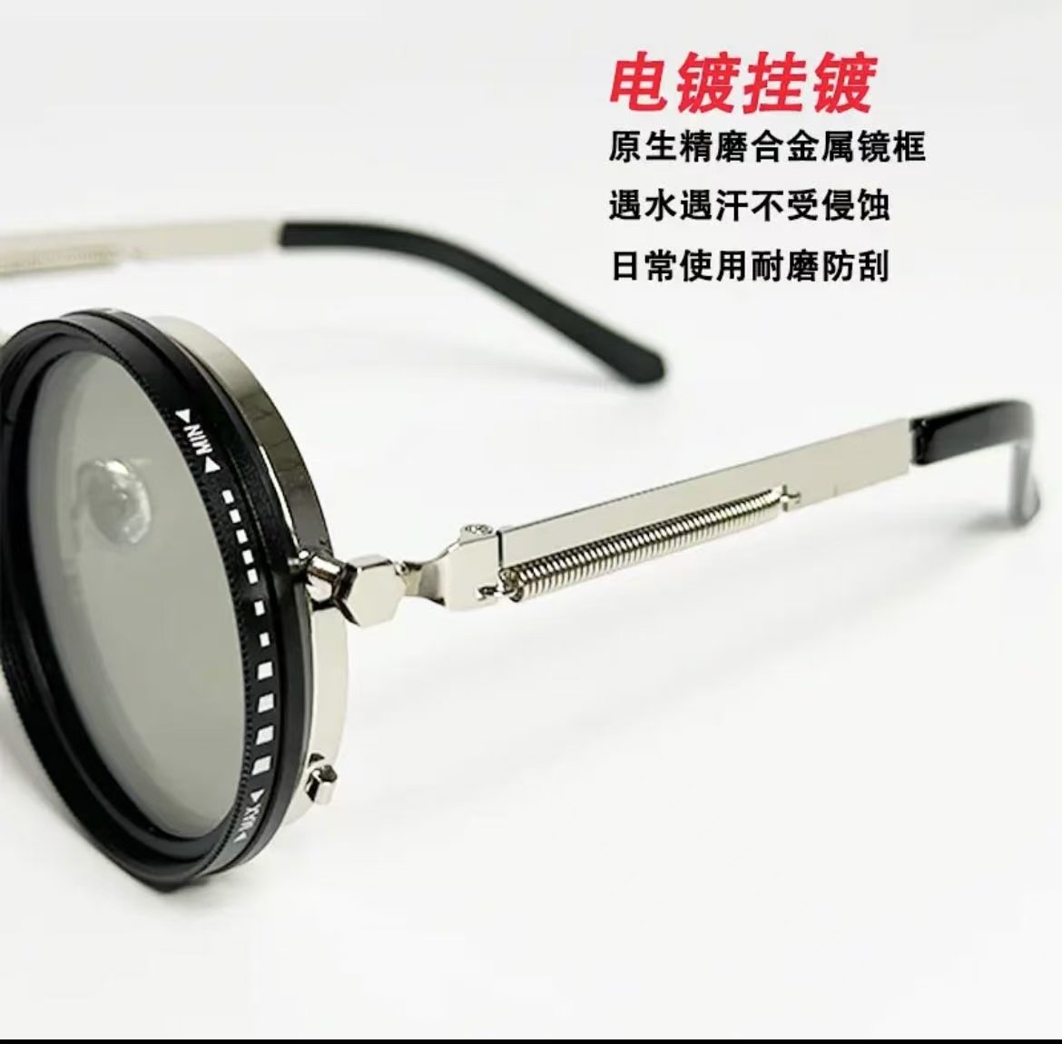ollig·ND純手工太陽墨鏡偏光偏振減光濾鏡可調節復古圓形框nd偏光眼鏡