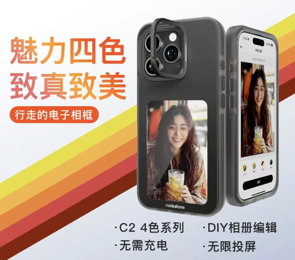 ollig·reinkstone彩色墨水屏手機殼智能投屏自主DIY防摔防指紋鏡頭金屬支架