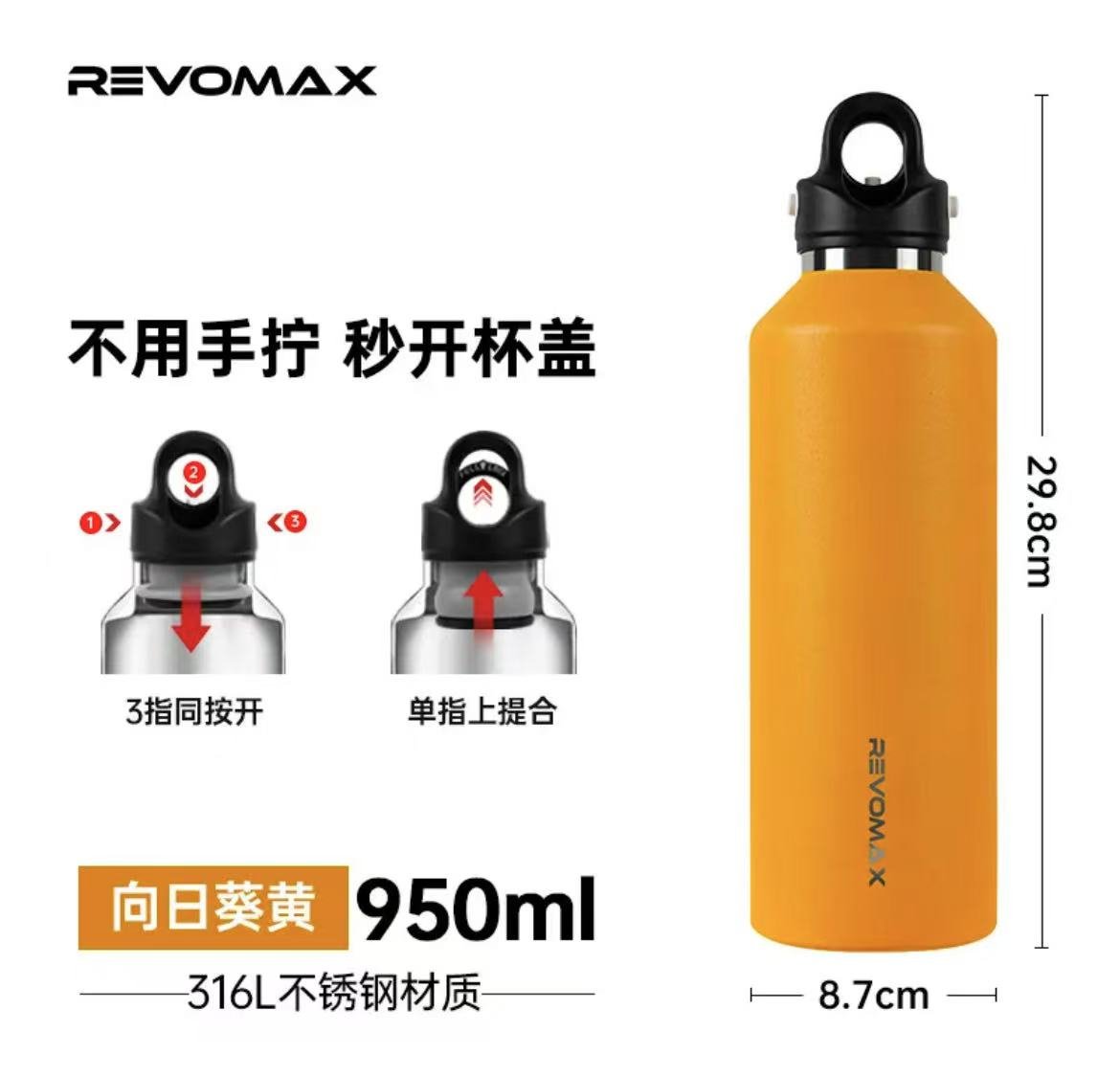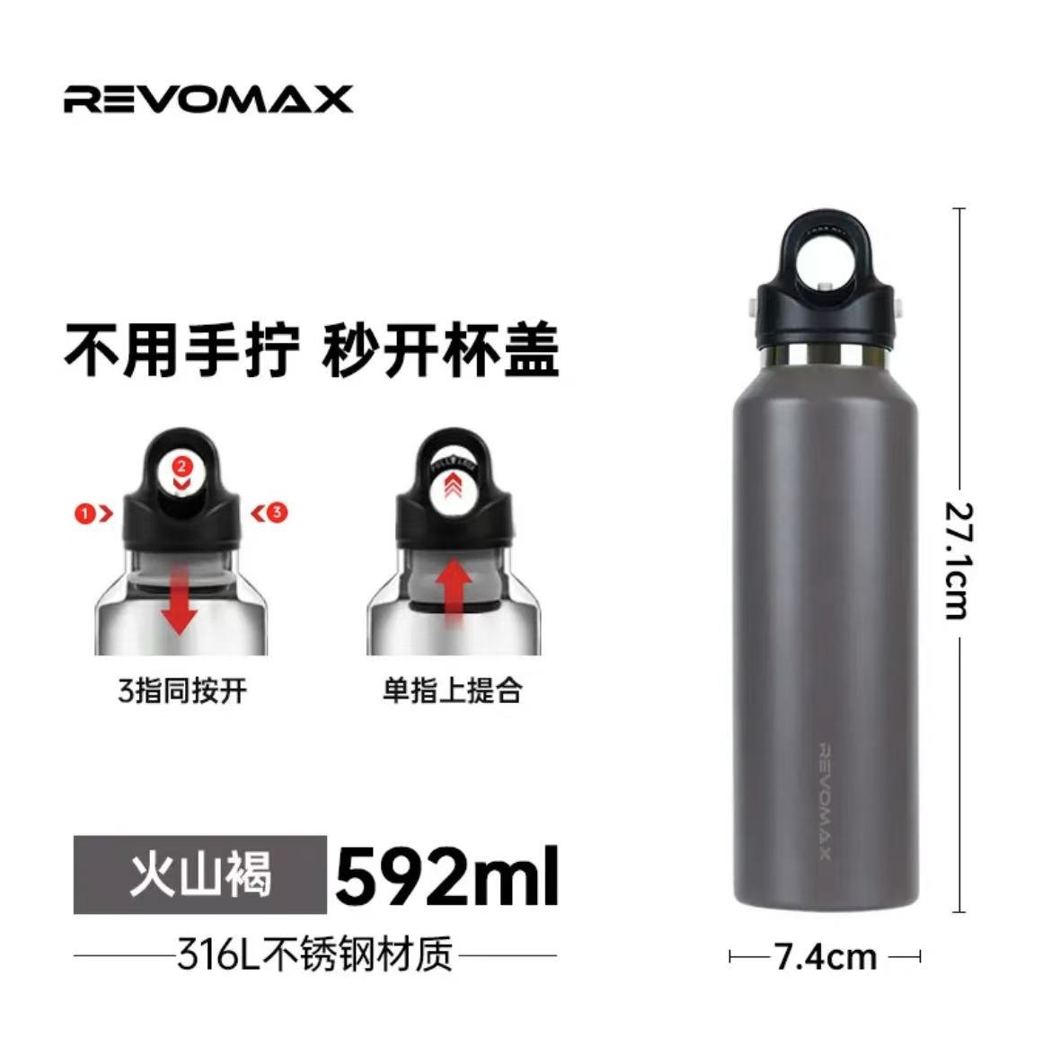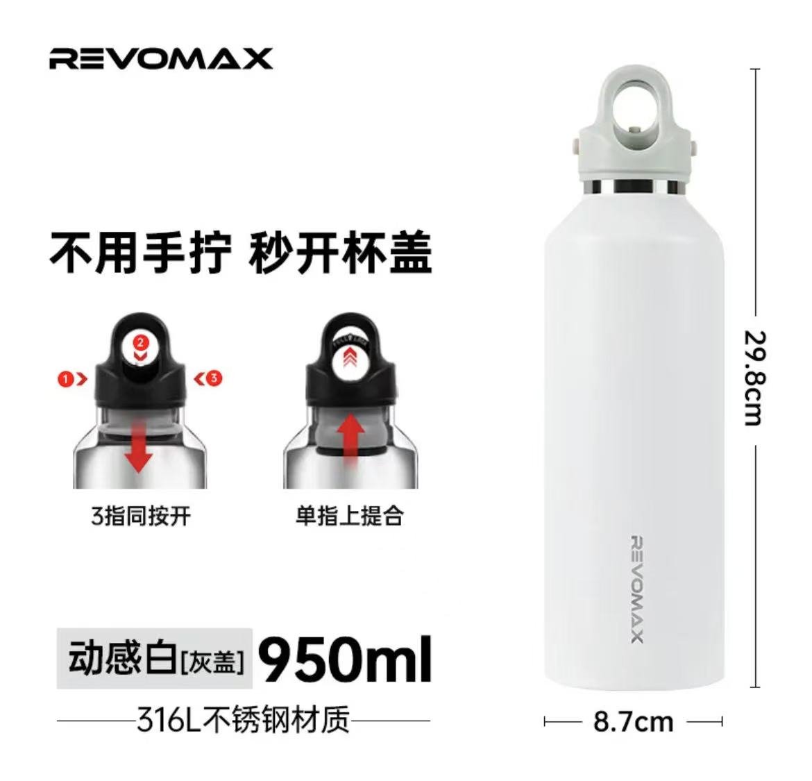 ollig·Revomax銳虎無螺紋保溫杯單手開蓋運動保冷保溫不鏽鋼水杯