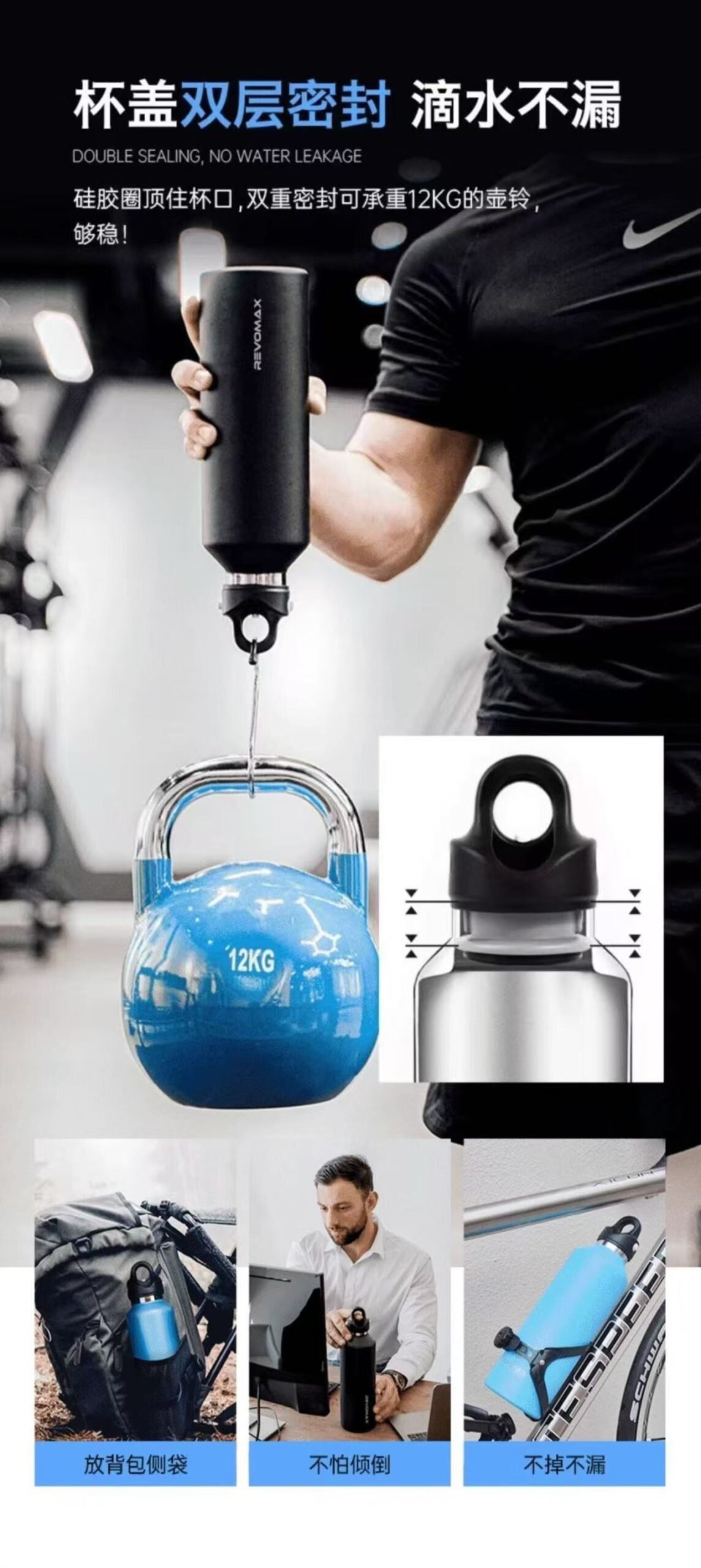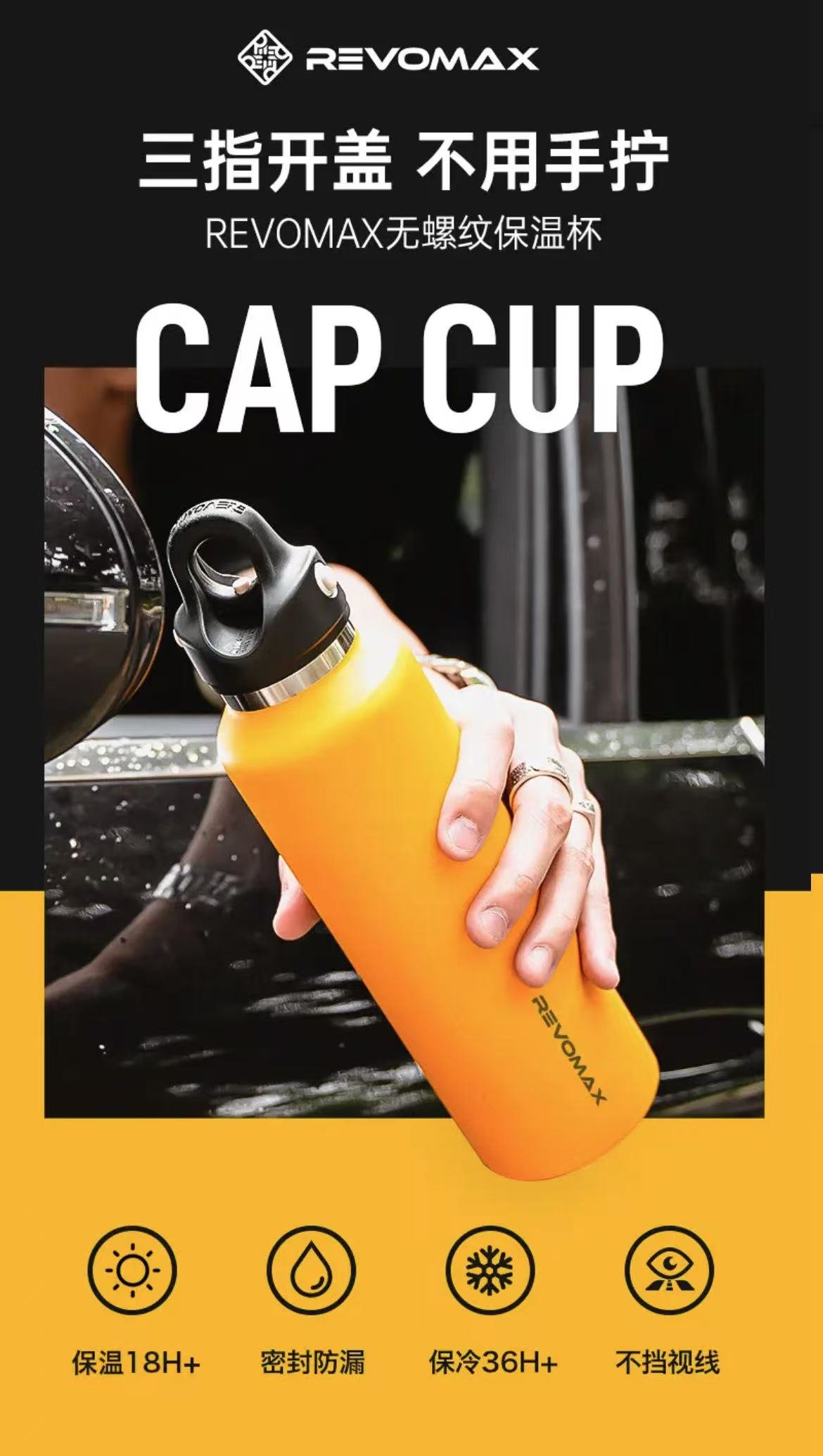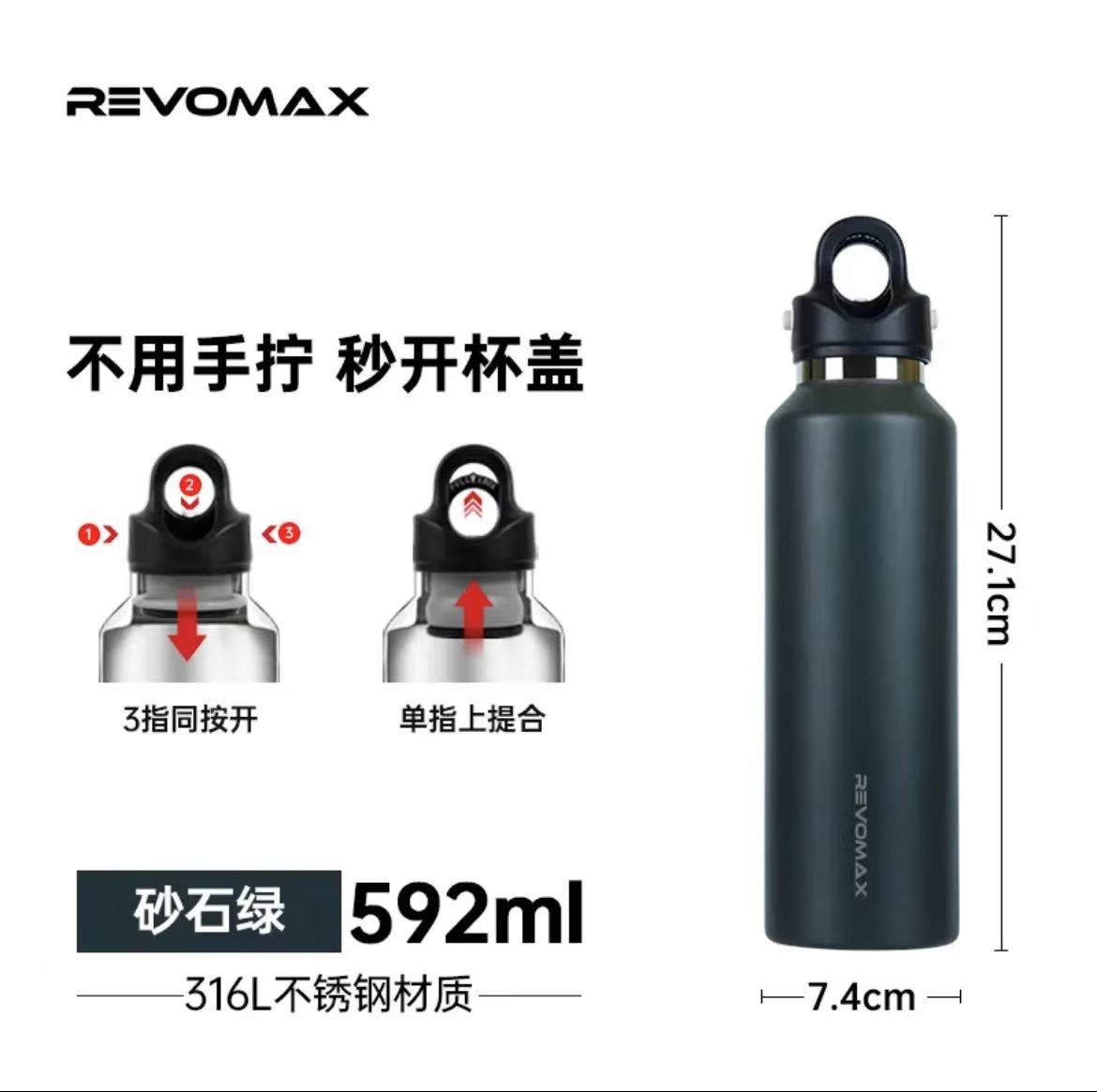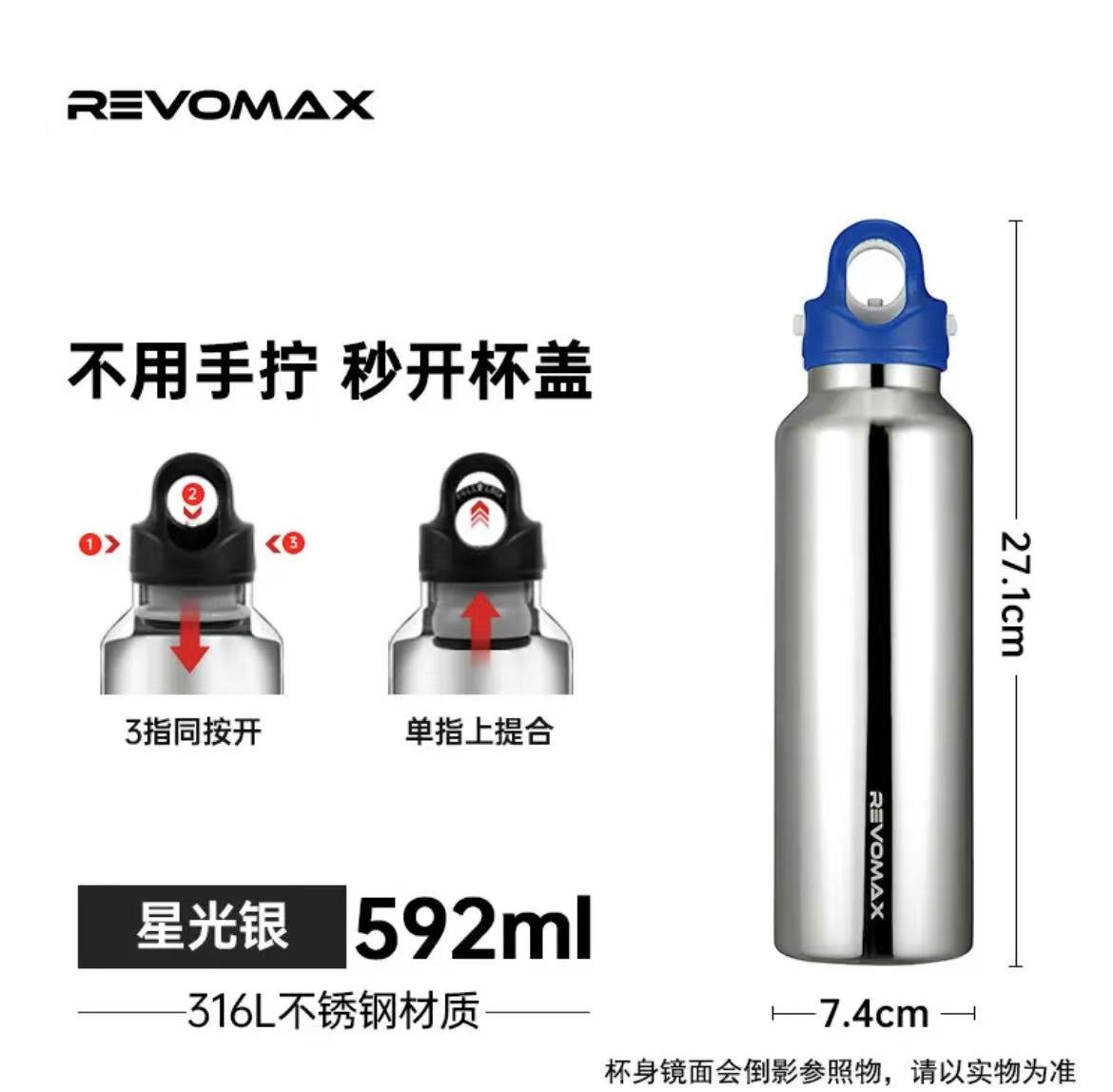 ollig·Revomax銳虎無螺紋保溫杯單手開蓋運動保冷保溫不鏽鋼水杯